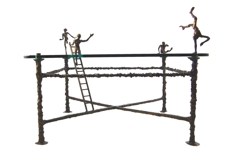 This low table was specially commissioned by a client wanting a coffee table with figures showing movement and a spirit of playfulness.