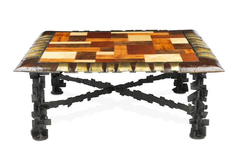 Bronze and Mixed Hardwood Low Table