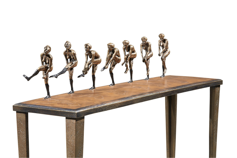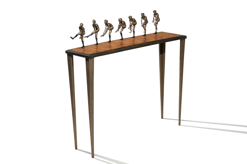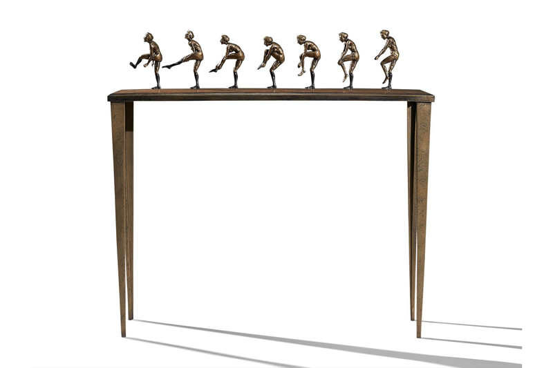 A short sequence of 7 figures referencing early movement photography and the everyday familiarity of tender observations. The console table top has been etched with a